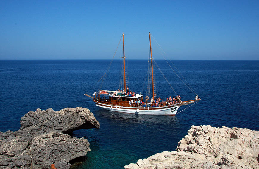 Join us aboard our traditional schooner for an unforgettable day at sea. Our journey takes us to Famagusta, where you’ll have the chance to view the eerie ghost town of Varosha and enjoy a refreshing swim in Derynia Bay. As we continue along the coastline, we’ll pass the iconic Fig Tree Bay before reaching the stunning Cape Greco area and the famous Blue Lagoon.
